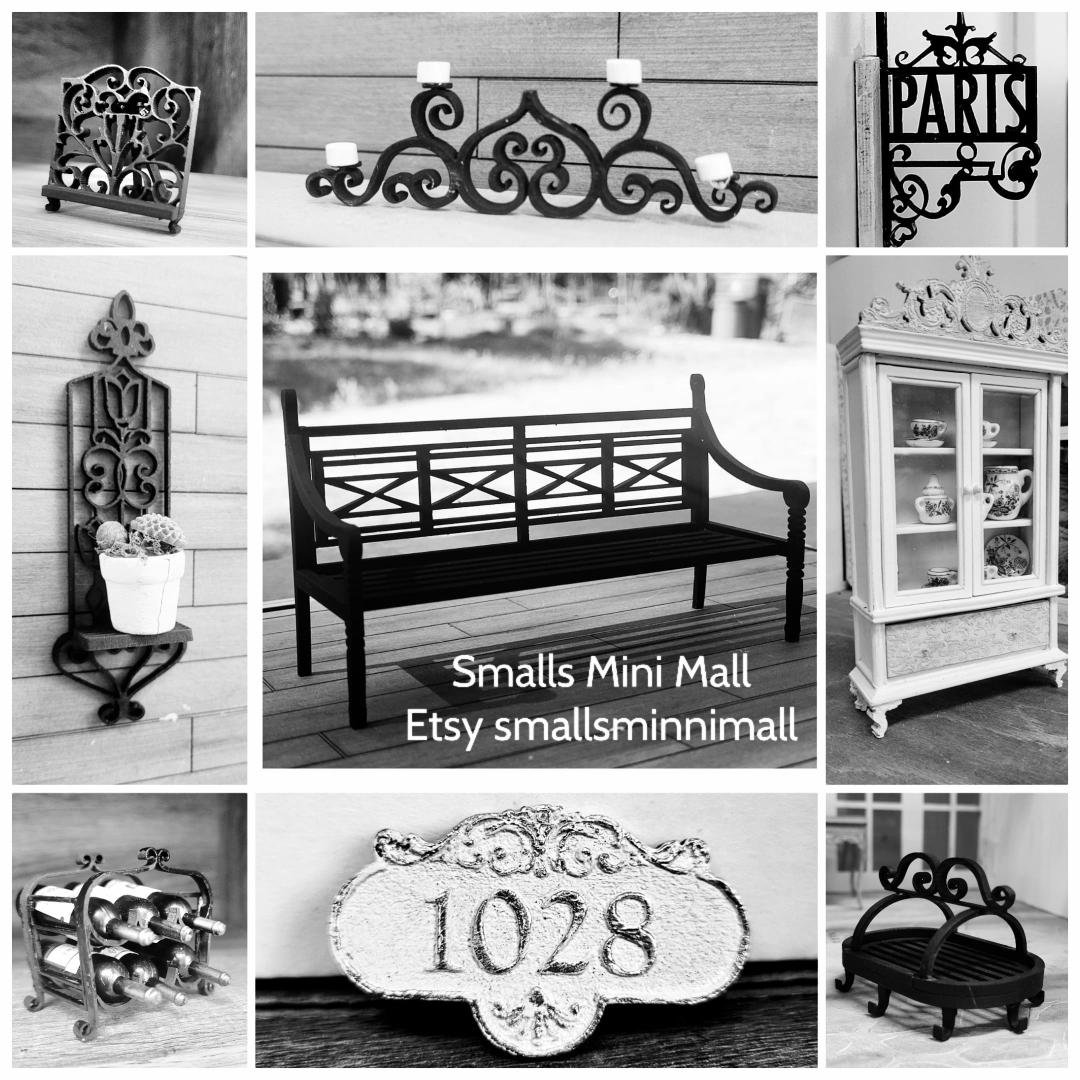 Wrought-Iron style beds, dreamy half-scale benches, customizable name plaques, and delicate décor accents. Ready-to-finish and unfinished kits (1:12, 1:24, ½ scales).