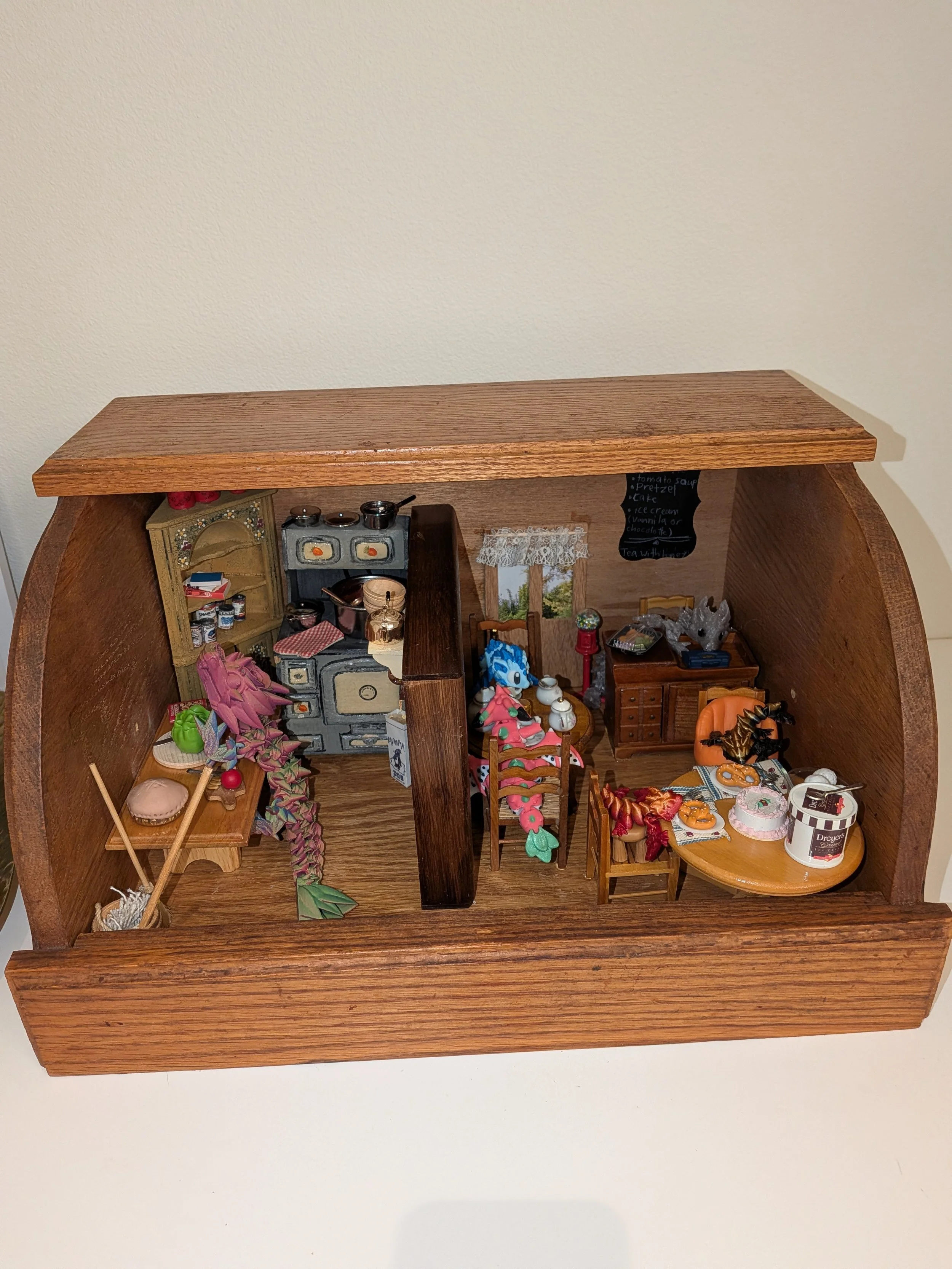 A small craft room built onto a 5×7 frame. The other 5×7 frame is a working clock.