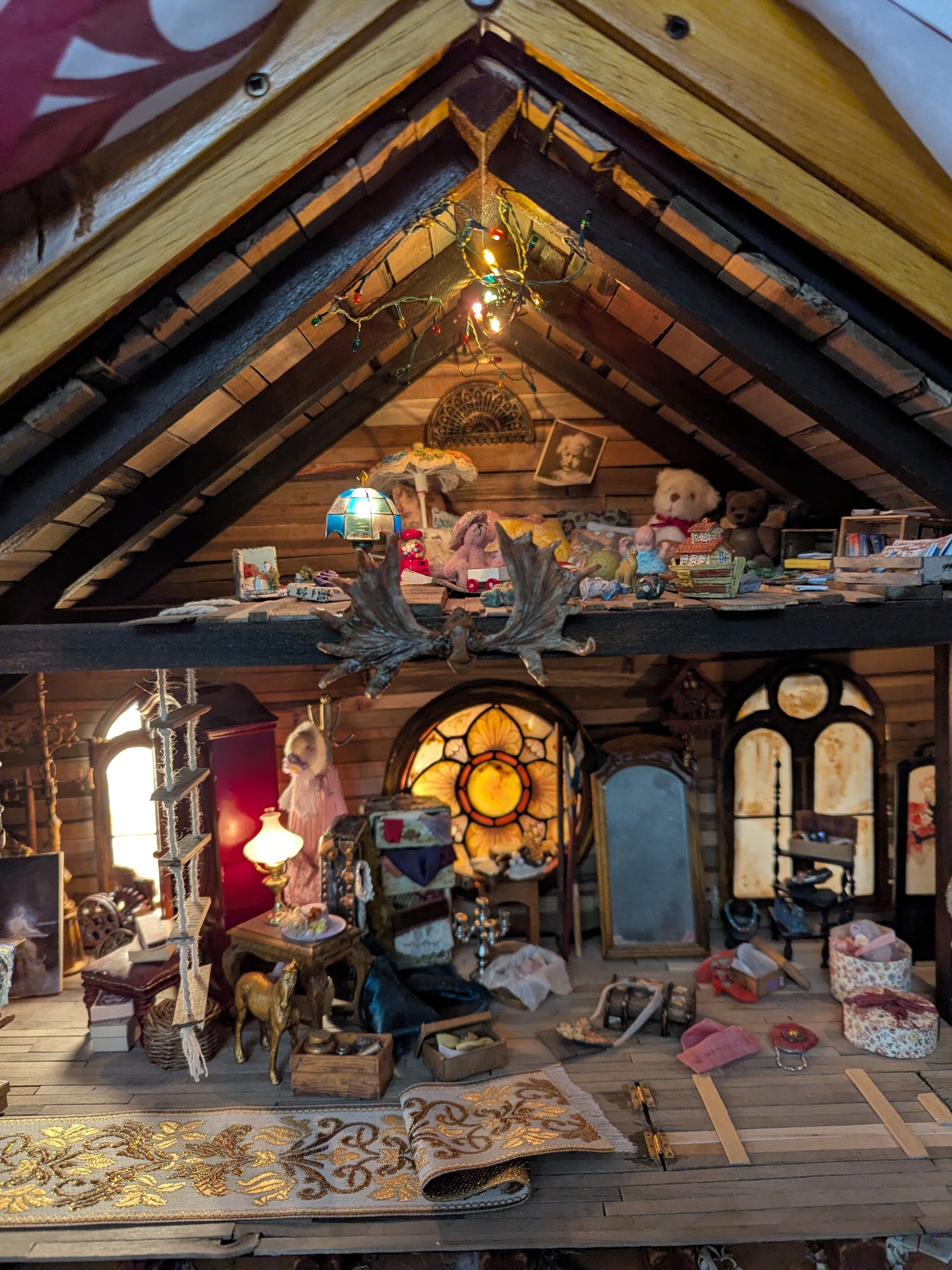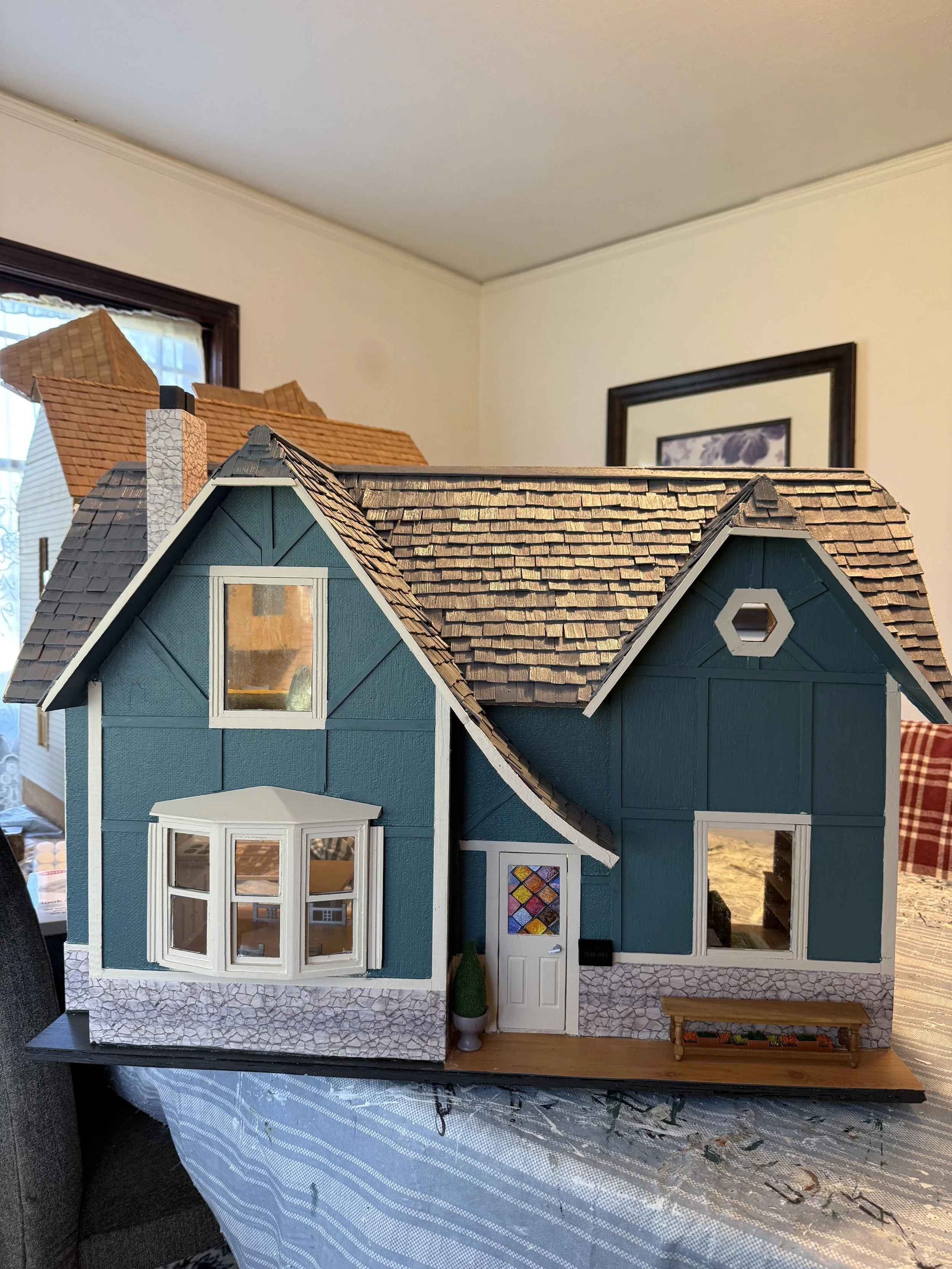 This Tennyson dollhouse has been entirely reimagined, honoring itsoriginal architectural spirit while embracing a thoughtful, contemporary restoration. Every surface has been renewed with care, transforming the house from a familiar form into a refined, cohesive miniature dwelling. The renovation balances preservation and reinvention: original proportions and character remain intact, while updated finishes, crisp details, and a unified palette bring clarity and calm to the structure. Each room has been considered as part of a larger narrative—spaces that feel lived-in, intentional, and quietly expressive. More than a model, this dollhouse serves as a meditation on renewal. It reflects the beauty found in revisiting what already exists, revealing how time, attention, and craftsmanship can restore dignity and meaning to a once-forgotten home.