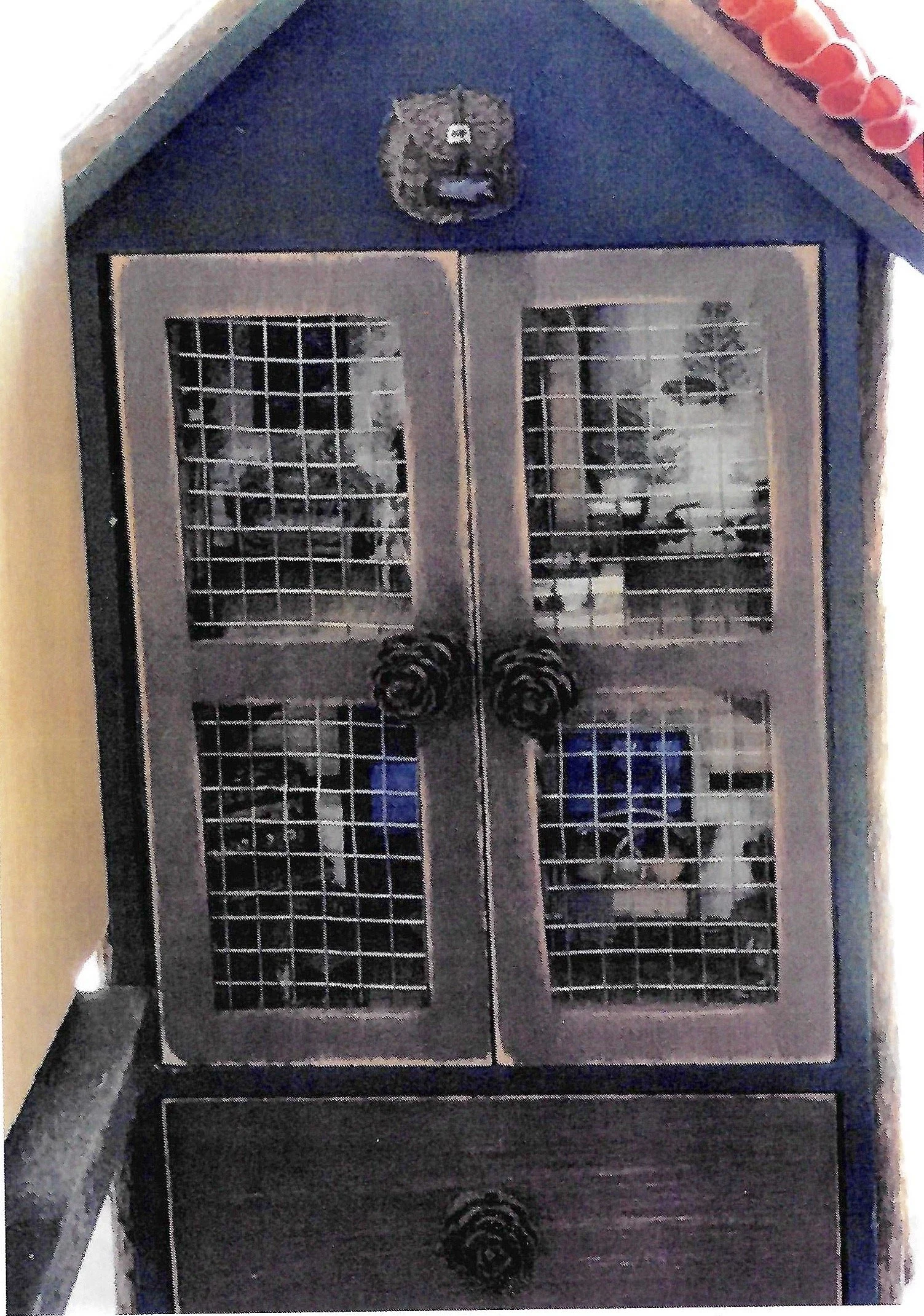 Small house built in a log cabin hutch- Class by Karen Gibbs.